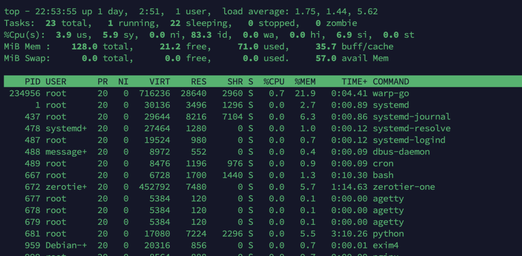 由于我们无法主动限制warp客户端的内存释放策略,且该主机商禁止了添加SWAP的策略,我们尝试通过自动监测warp-go的内存占用情况,并且在占用过多时重启服务。